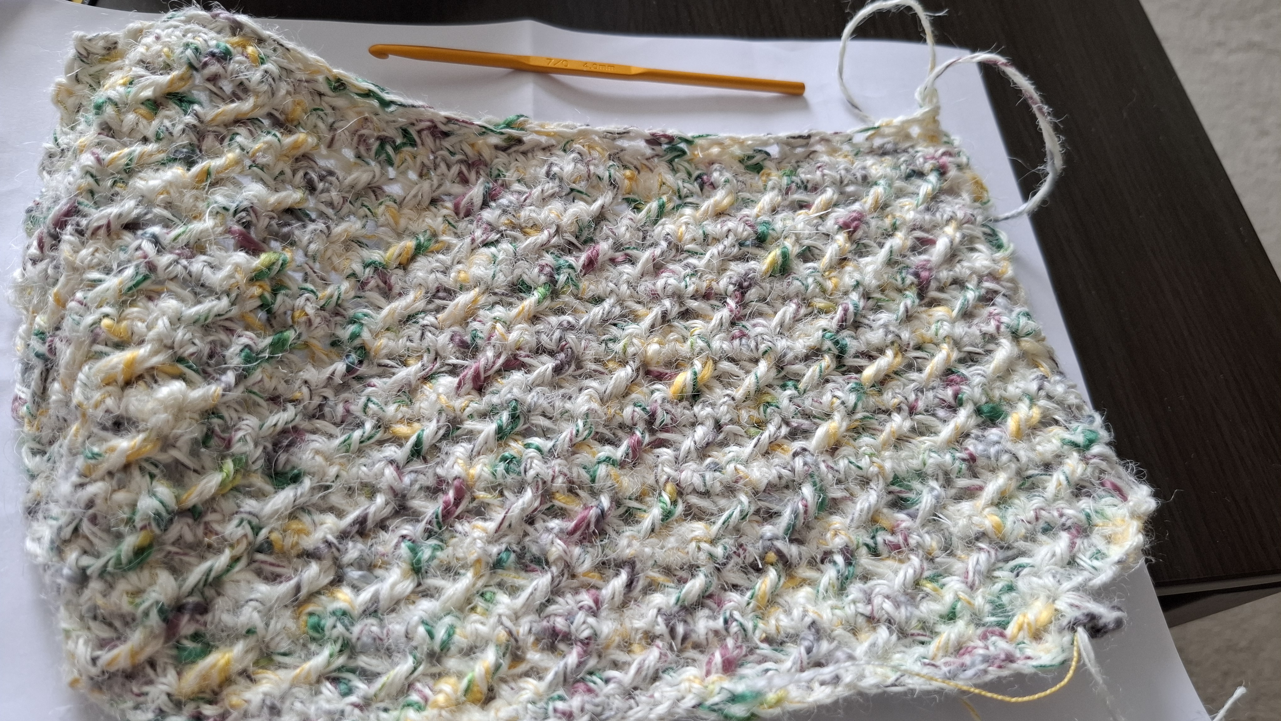 編み物。自分じゃ絶対買わないであろう色した糸だから、気持ちはとても新鮮。